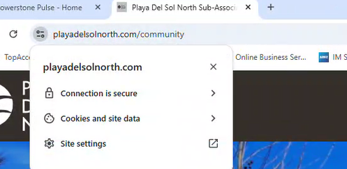 - Navigate to the community website and click on the settings icon to the left of the URL